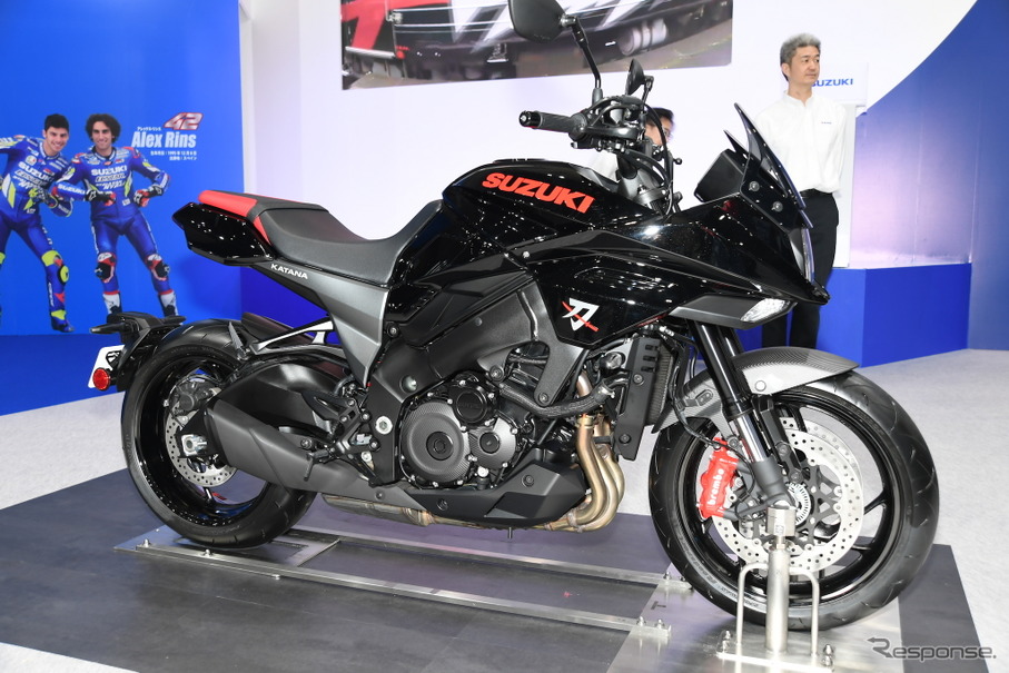 独自性の高いデザインを実現するために スズキの持つ技術力を結集し 妥協せず極める タンクからフロントノーズにまでシャープで流れるようなラインは 刀を想起させる gsx1100s katana の角形デザインをイメージするledヘッドランプ 刀の切先をイメージした造形のウィング先端には.