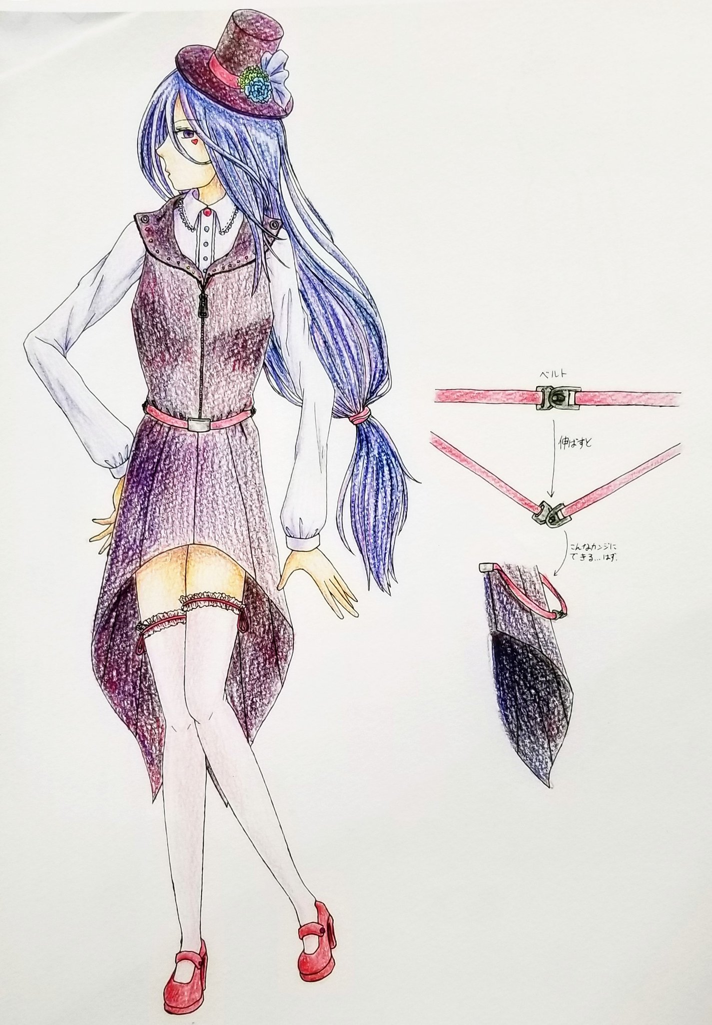 ファッションデザイン画 色鉛筆