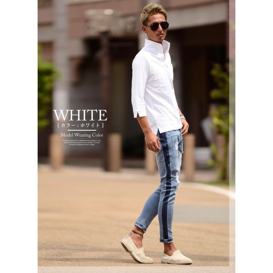 ポロシャツ メンズ おしゃれ 7分袖 鹿の子 スポーツ イタリアンカラー 立ち衿 ゴルフ 夏 黒 白 M L メンズファッション