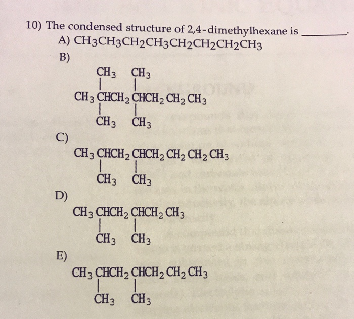 What Is The Condensed Structural Formula Of 2 4 Dimethylhexane