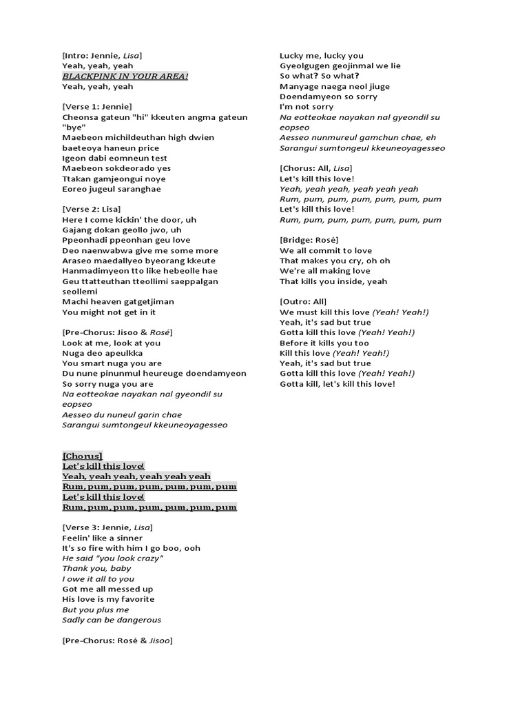 Genius Romanizations Blackpink Kill This Love Romanized Lyrics Genius Lyrics