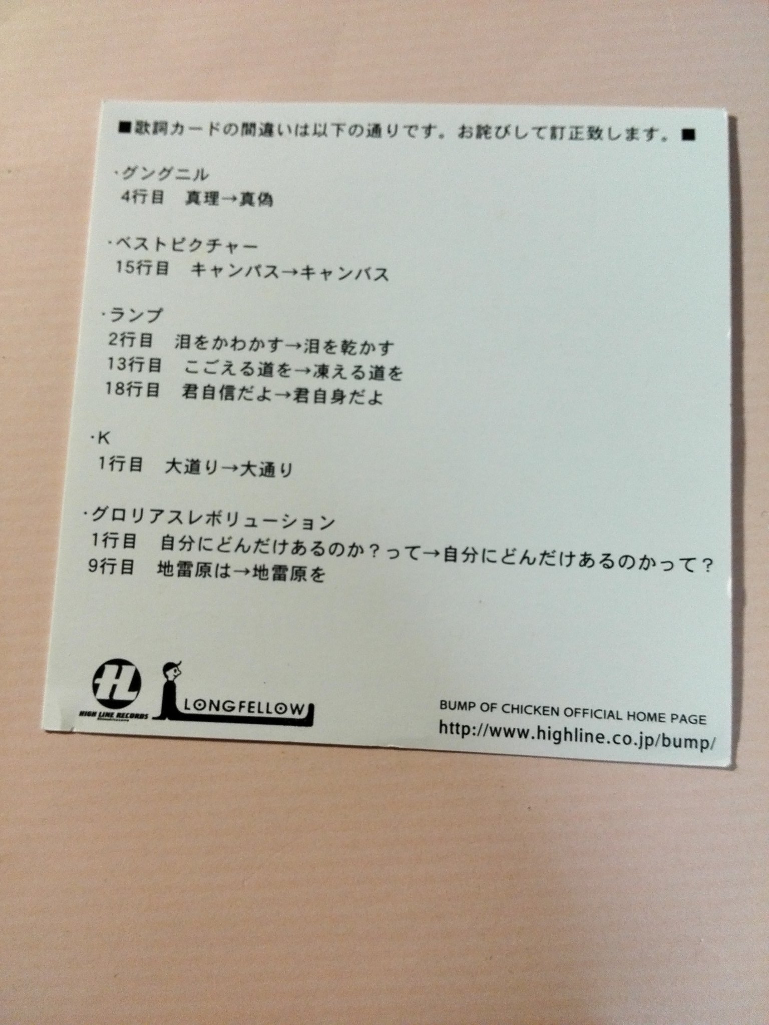 アッキー Bump垢 On Twitter The Living Deadの歌詞訂正カードを