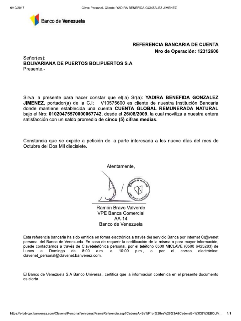 Cl Venet Clavenet Personal Banco De Venezuela