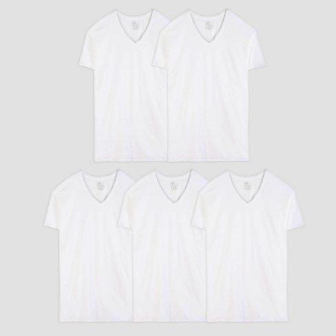 Fruit of the loom men s white crew t shirt 6 pack no ride up stays tucked m l xl. Fruit of the loom men s v neck t shirts white size 3x 5 pack tagless. Our tall man undershirts provide extra length in body and sleeves without the added width. 4 6 out of 5 stars 14 335.
