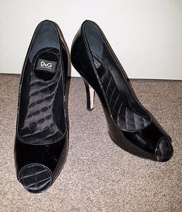 Dolce Gabbana D G Black Quilted Patent Heels Shoes Women Used Ladies Size 4 37 Ebay