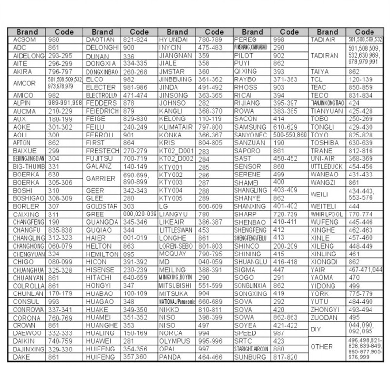 Universal Air Conditioner Remote Control Codes