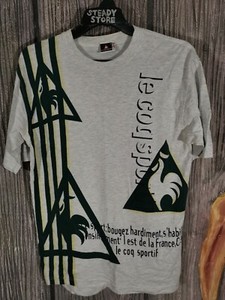 Vintage 90 S Le Coq Sportif Big Logo Spell Out Gray Tee T Shirt M