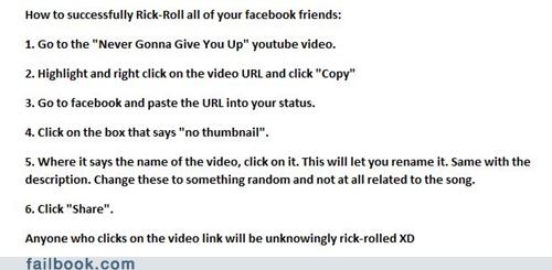 How To Rick Roll Your Facebook Friends Failbook Failing On
