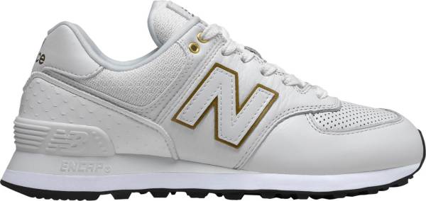 New Balance 574 Womens White Patent White Patent Leather Shoes